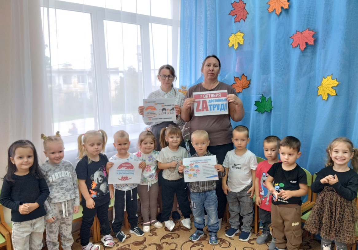 Сотрудники МБДОУ "Чапаевский детский сад "Орешек" присоединились к профсоюзной акцию в защиту законных прав и интересов трудящихся, посвященной Всемирному дню действий «За достойный труд!».