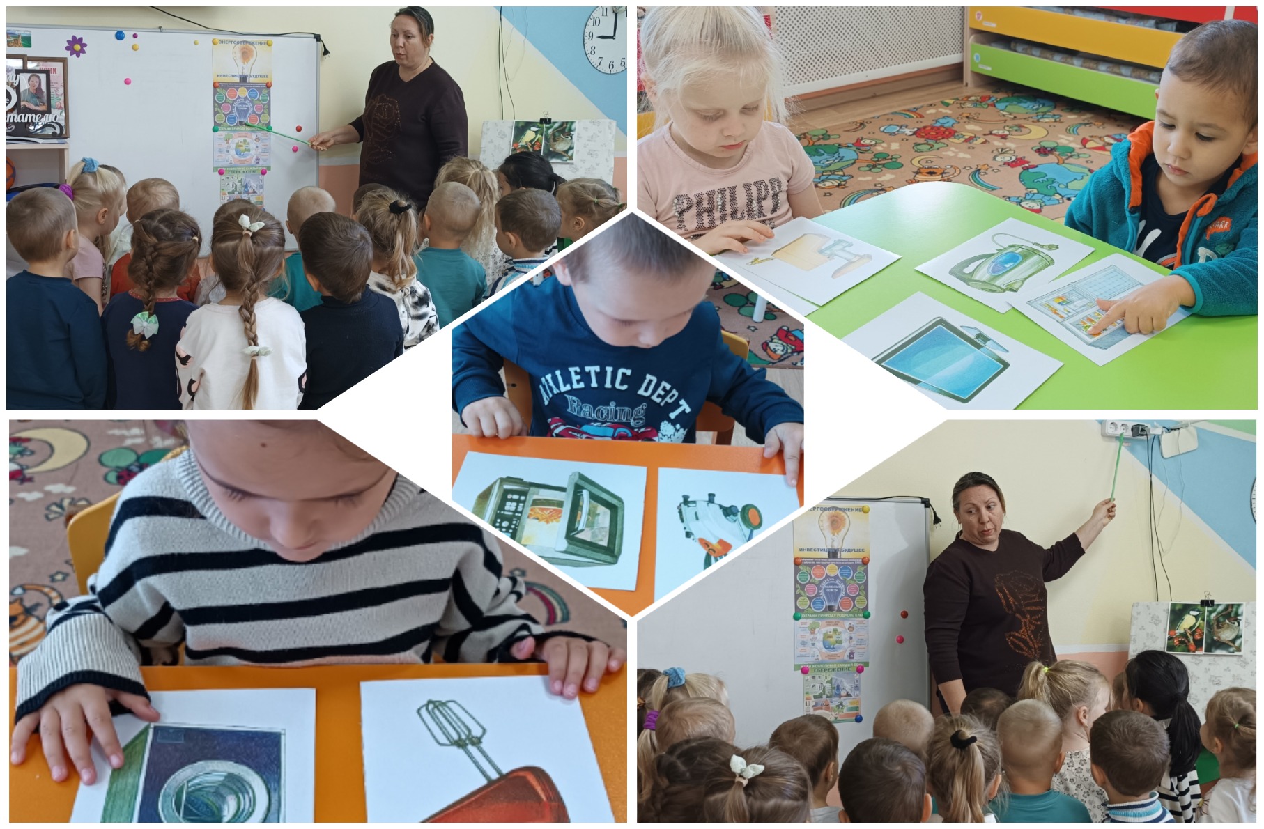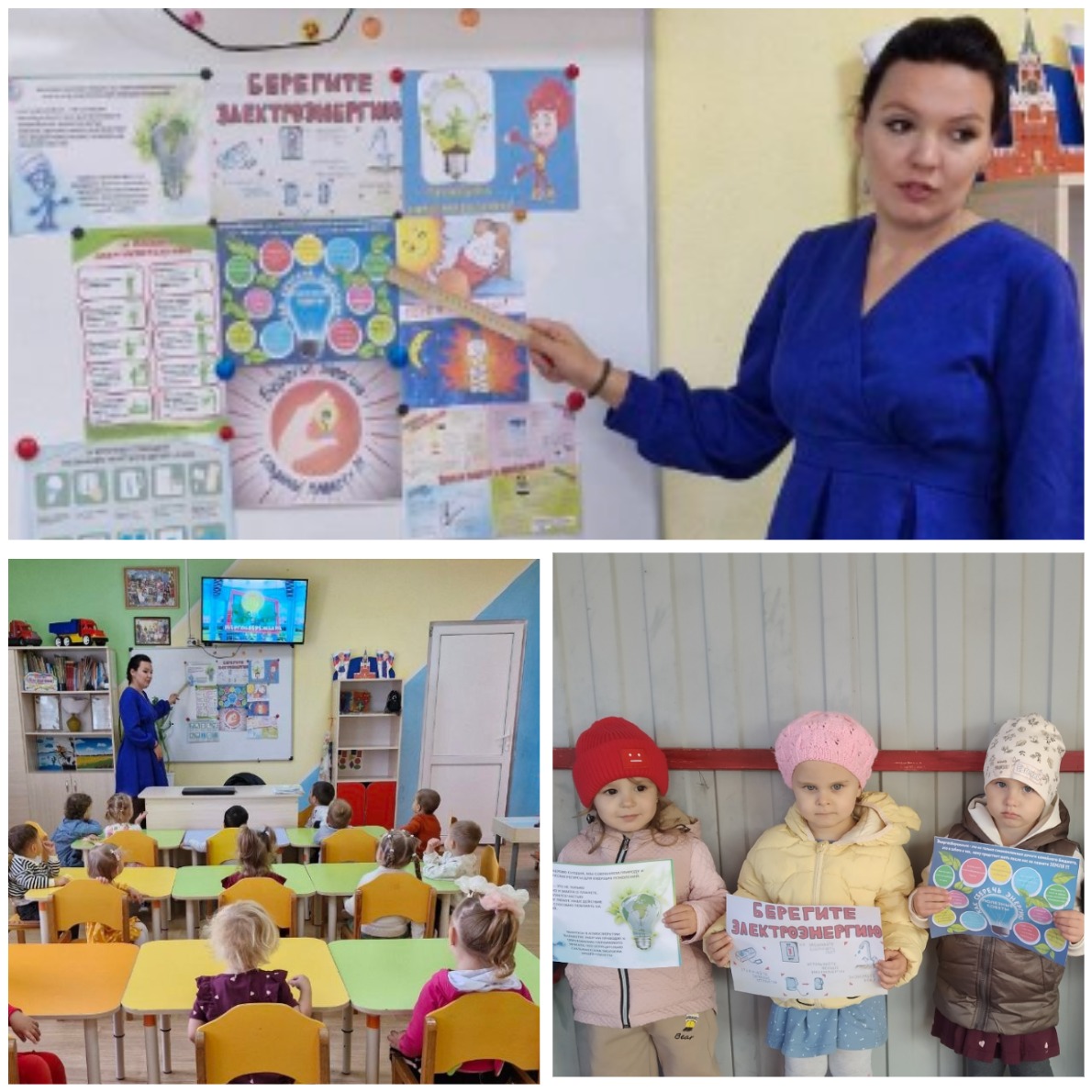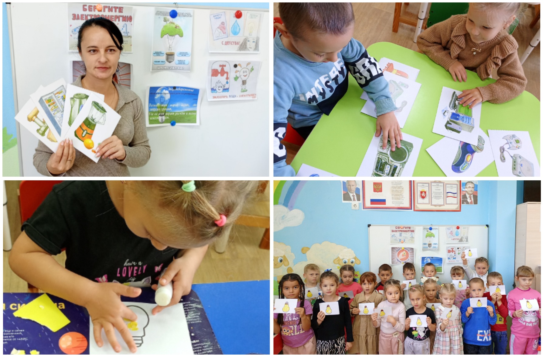 Во всех дошкольных группах были проведены тематические беседы и познавательные занятия на темы: «Как бережно относиться к электричеству», «Где живет лампочка», «Куда бежит вода», «Уходя, гасите свет». Воспитатели показали детям мультфильм "Фиксики" и видеоролик "Берегите электричество" с целью обобщения полученных знаний о важности экономного отношения к электроэнергии.